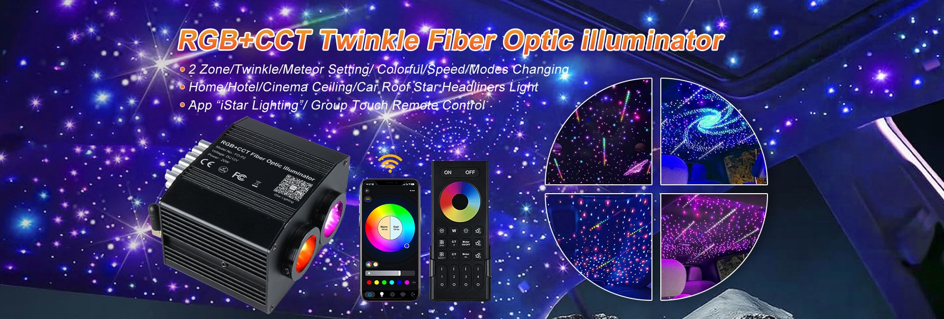 Iluminador de fibra óptica RGB + CCT con efecto centelleante, máquina de luz DC12V de control RF/App DIY para Proyecto de techo/escenario, 1 unidad
